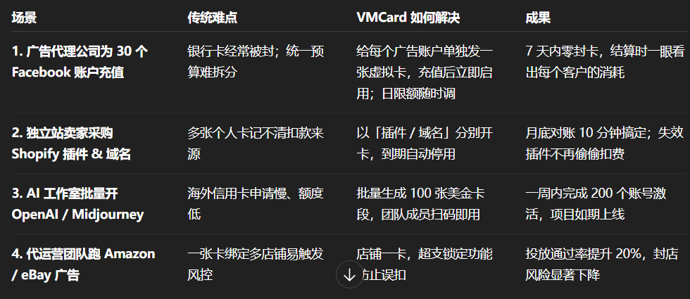 海外广告、云服务、SaaS 订阅往往要求 Visa/MasterCard 且需稳定扣费;传统实体卡申请周期长、额度死板,错过营销窗口。