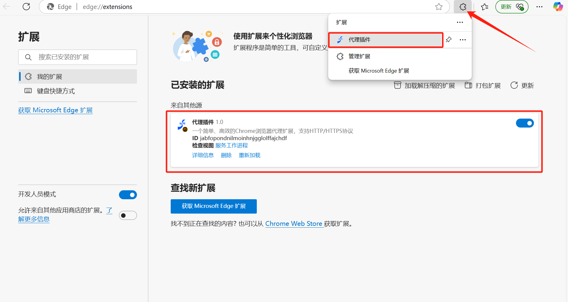 5、选择解压缩的文件,出现下图代理插件即为安装成功。