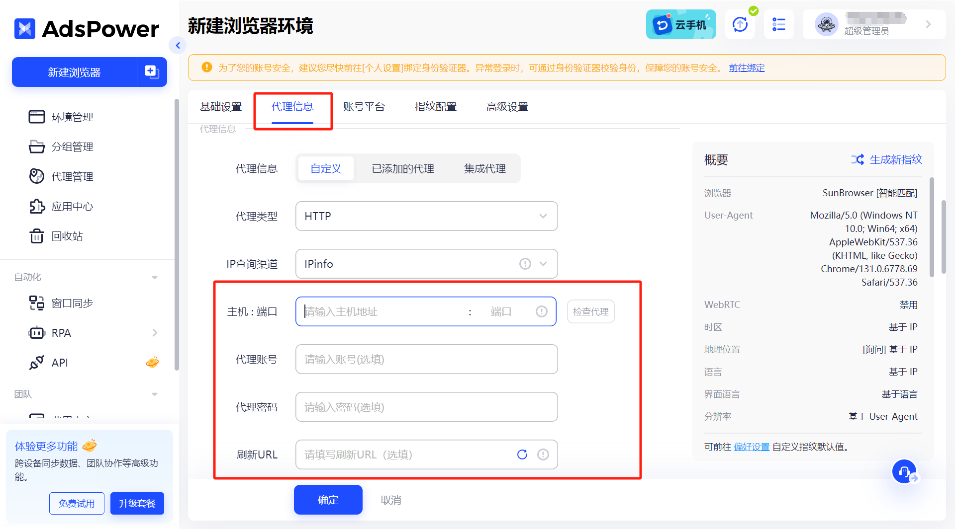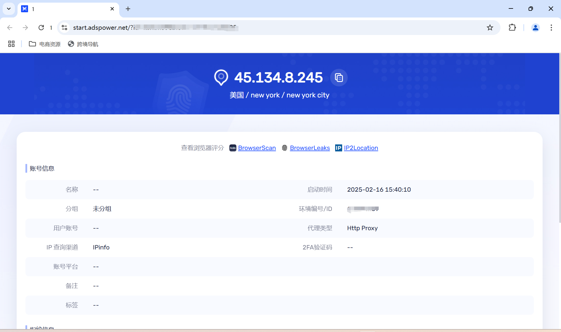 6、将复制的代理IP粘贴至Adspower代理信息中。