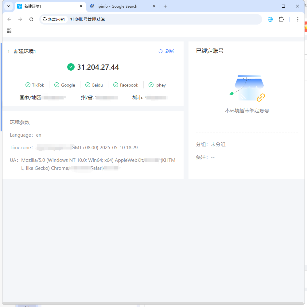 8、设置完以上信息即可点击确定保存设置,除代理信息外其他信息也可按需求选择设置(如账号平台、指纹配置等)。