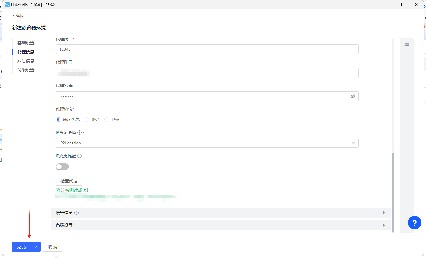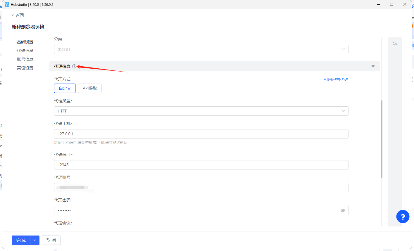 5、将复制的代理IP粘贴至Hubstudio代理信息中。