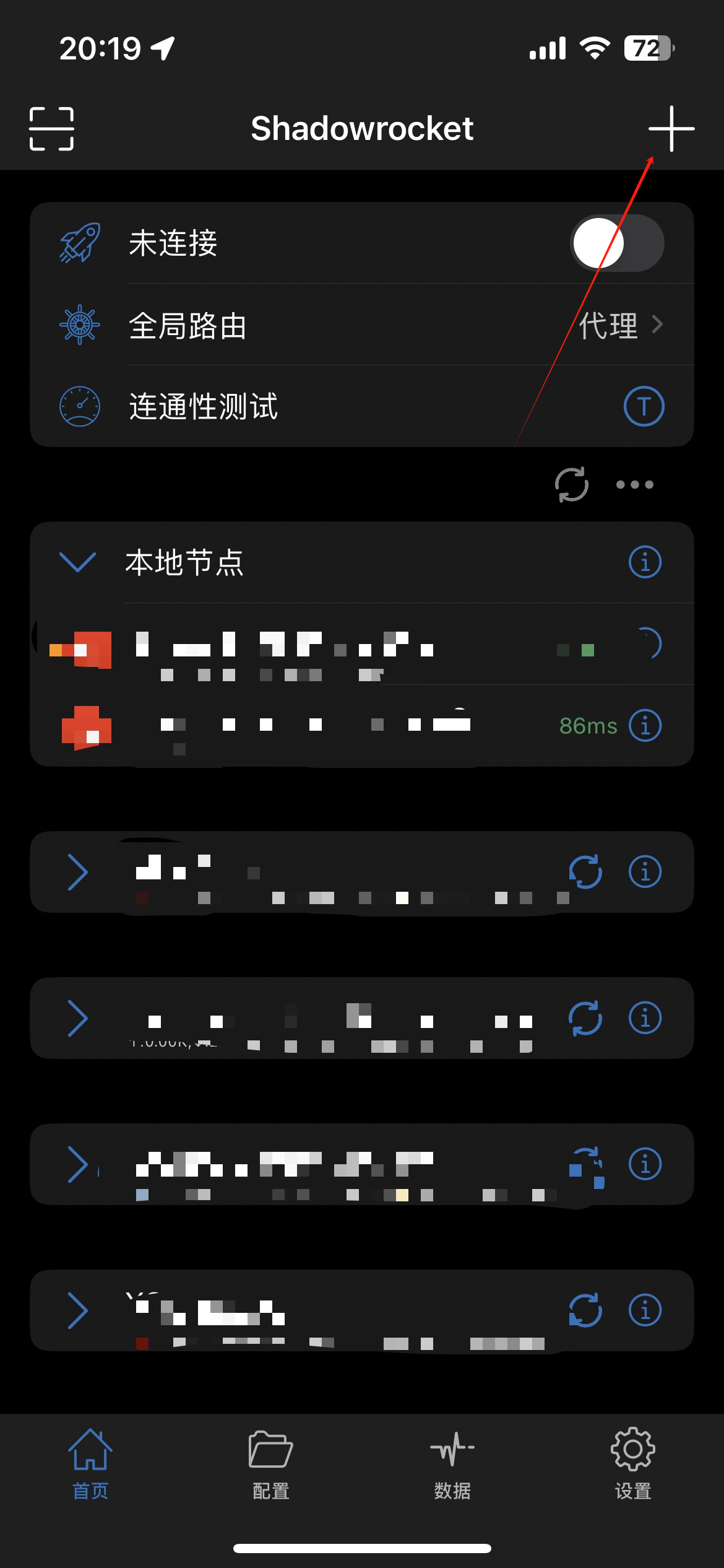 1.下载Shadowrocket,打开Shadowrocket,点击新建